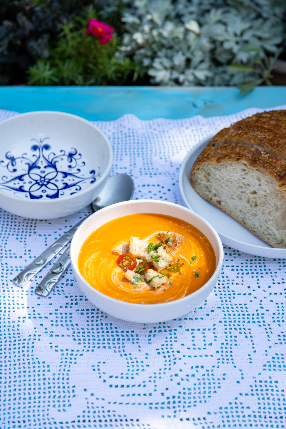 Kiš Loren se po pravilu služi uz zelenu salatu, mada ni neka potaž čorba nije loš izbor, recimo ova od pečenih paprika i paradajza. Zaista je idealno jelo za branč.